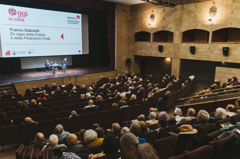 Il ciclo “OGGI in città” è iniziato con il primo appuntamento con Franco Gabrielli, ex Capo della Polizia, della Protezione Civile e sottosegretario, sabato 11 aprile, al Cinema La Compagnia. L’incontro ha avuto per titolo “Il senso della sicurezza”. Il prossimo appuntamento è con Mario Tozzi, sabato 6 giugno, sul tema: “Noi, l’ambiente e la qualità della vita: natura è benessere”.